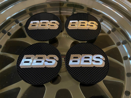 BBS 80mm Carbon / Silver Centercaps Badges Logos (self leveling)