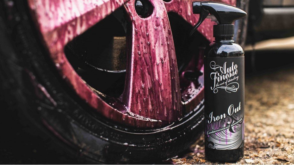 Auto Finesse® Iron Out is a powerful, pH-neutral iron-contaminate and fallout remover that dissolves ferrous particles embedded in surfaces before they cause lasting damage. Its advanced formula is safe to use on most exterior surfaces, including paintwork, aluminum (except bare aluminum), magnesium, stainless steel, anodized finishes, chrome, glass, plastic, and rubber. The product also contains degreasing agents to help remove road grime.