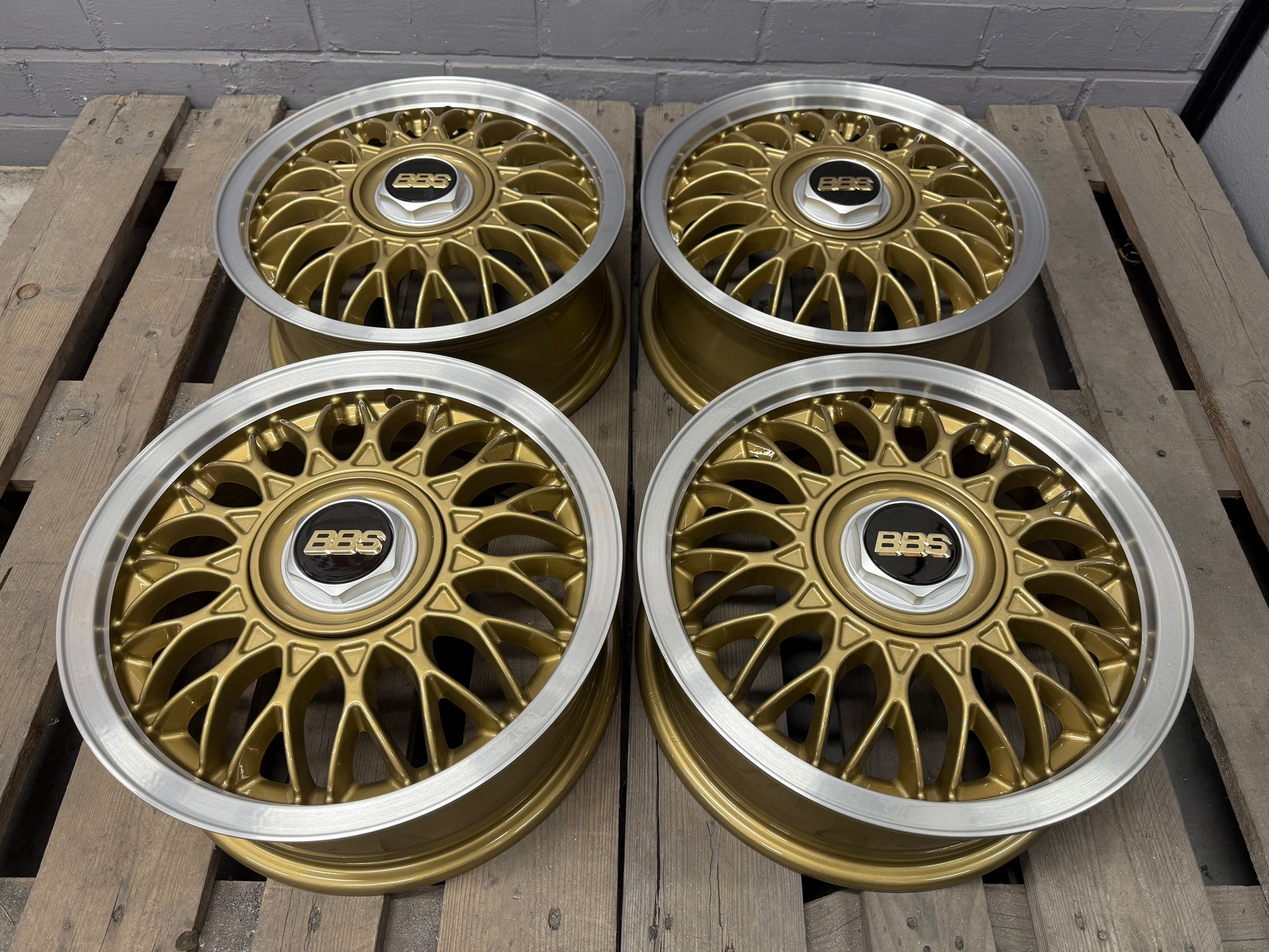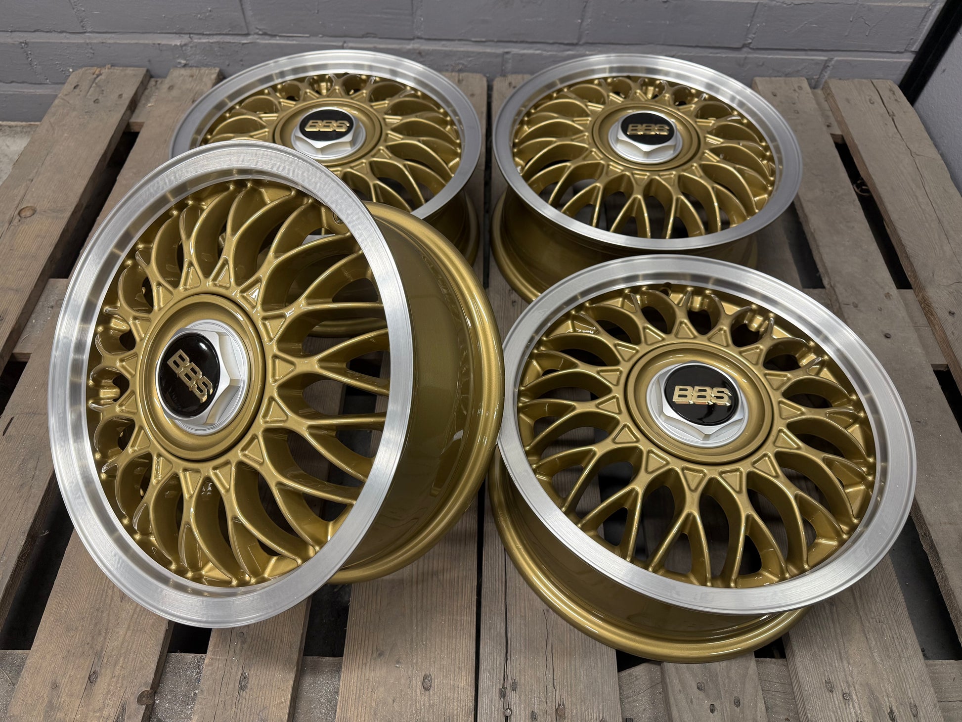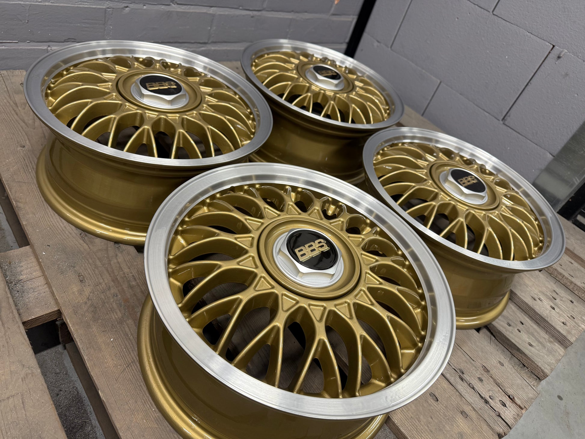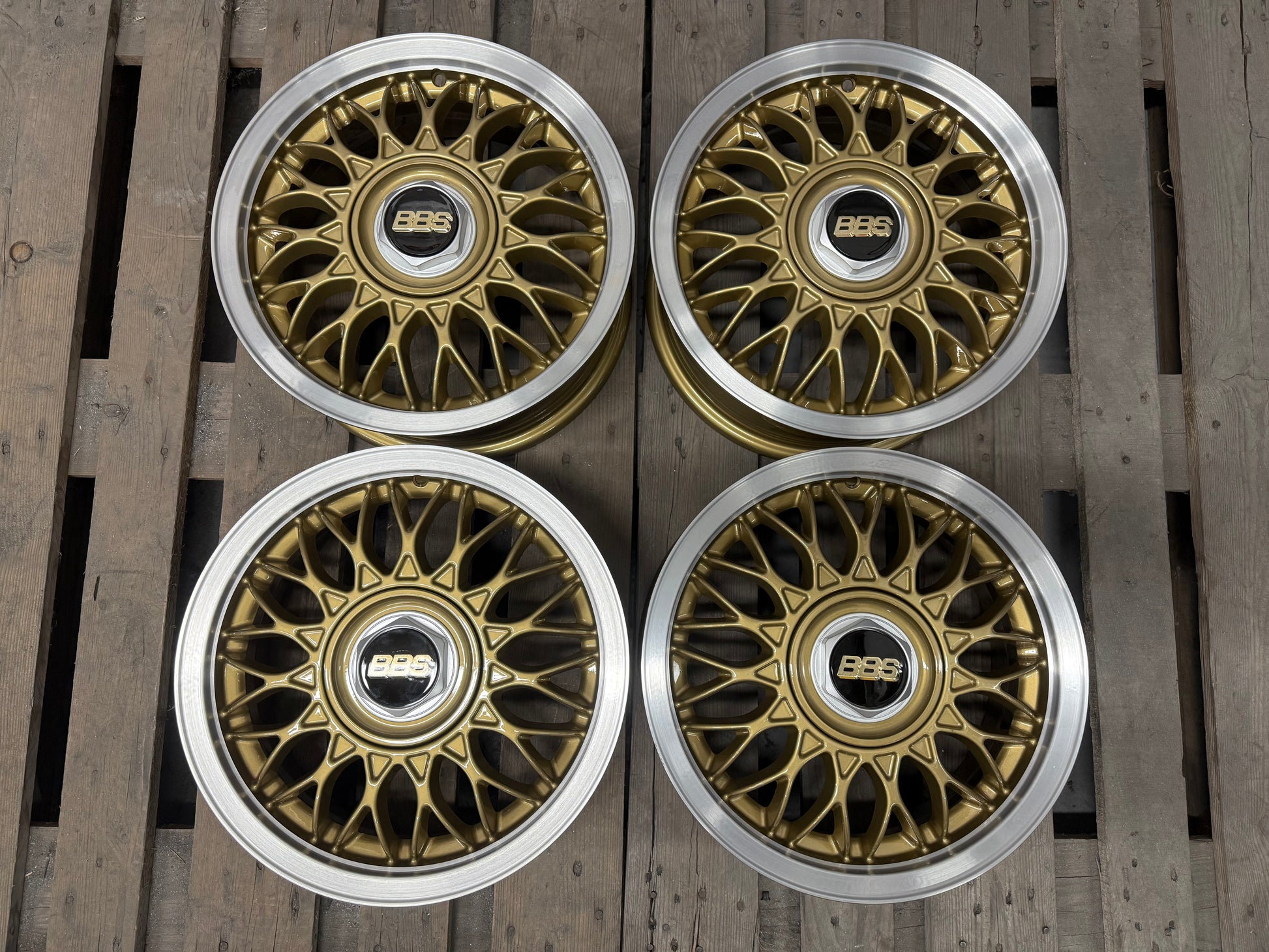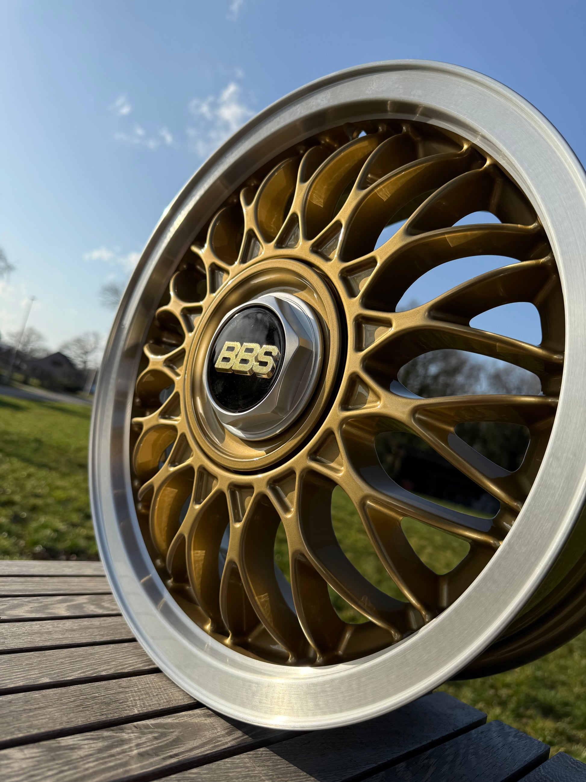 • Powder-coated in “BBS Gold”, Diamond cut lips, and clear-coated.