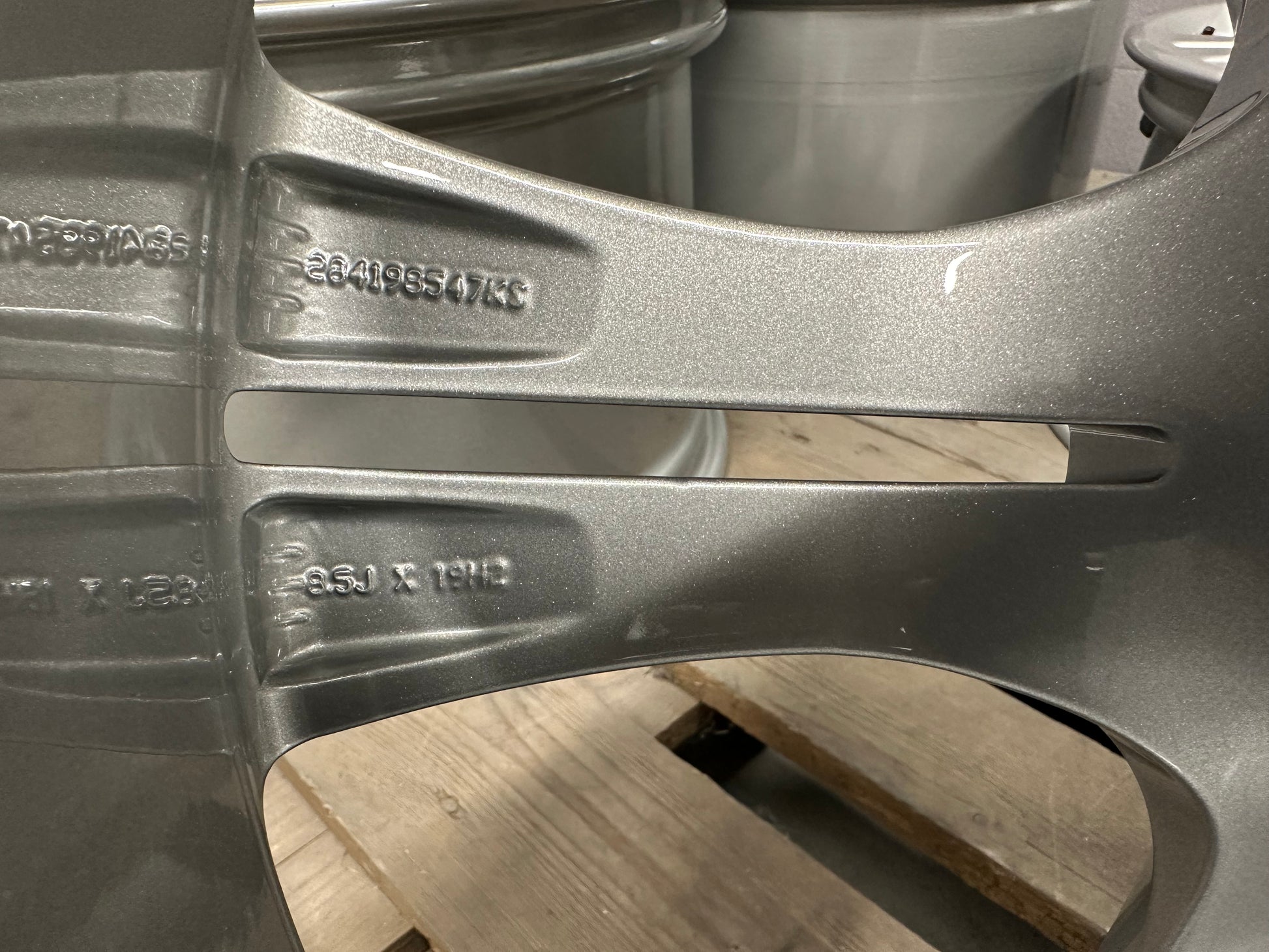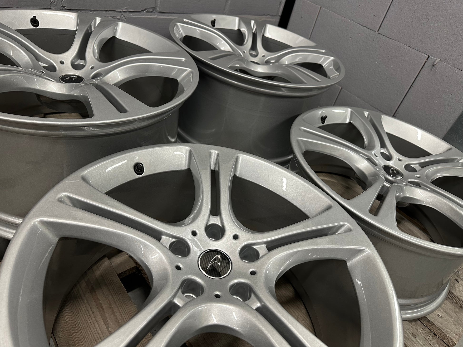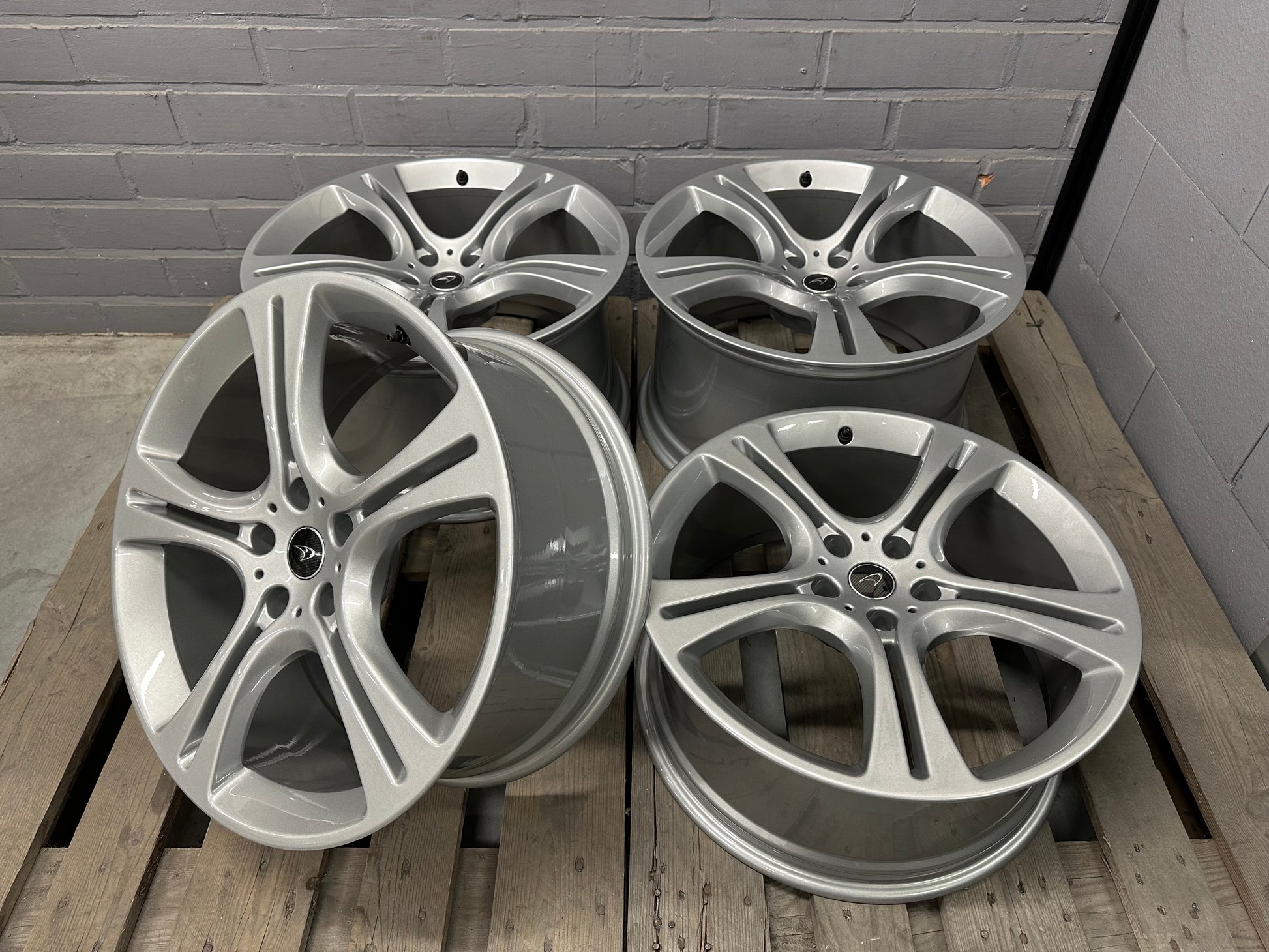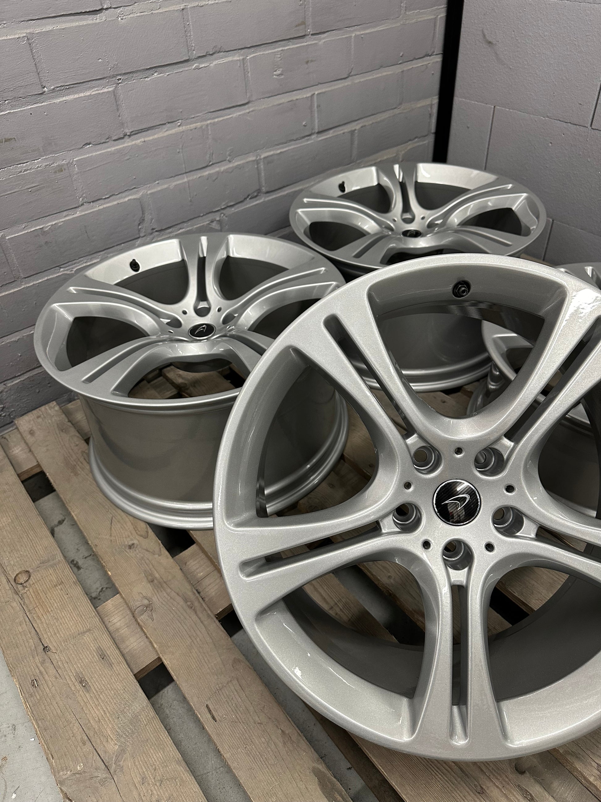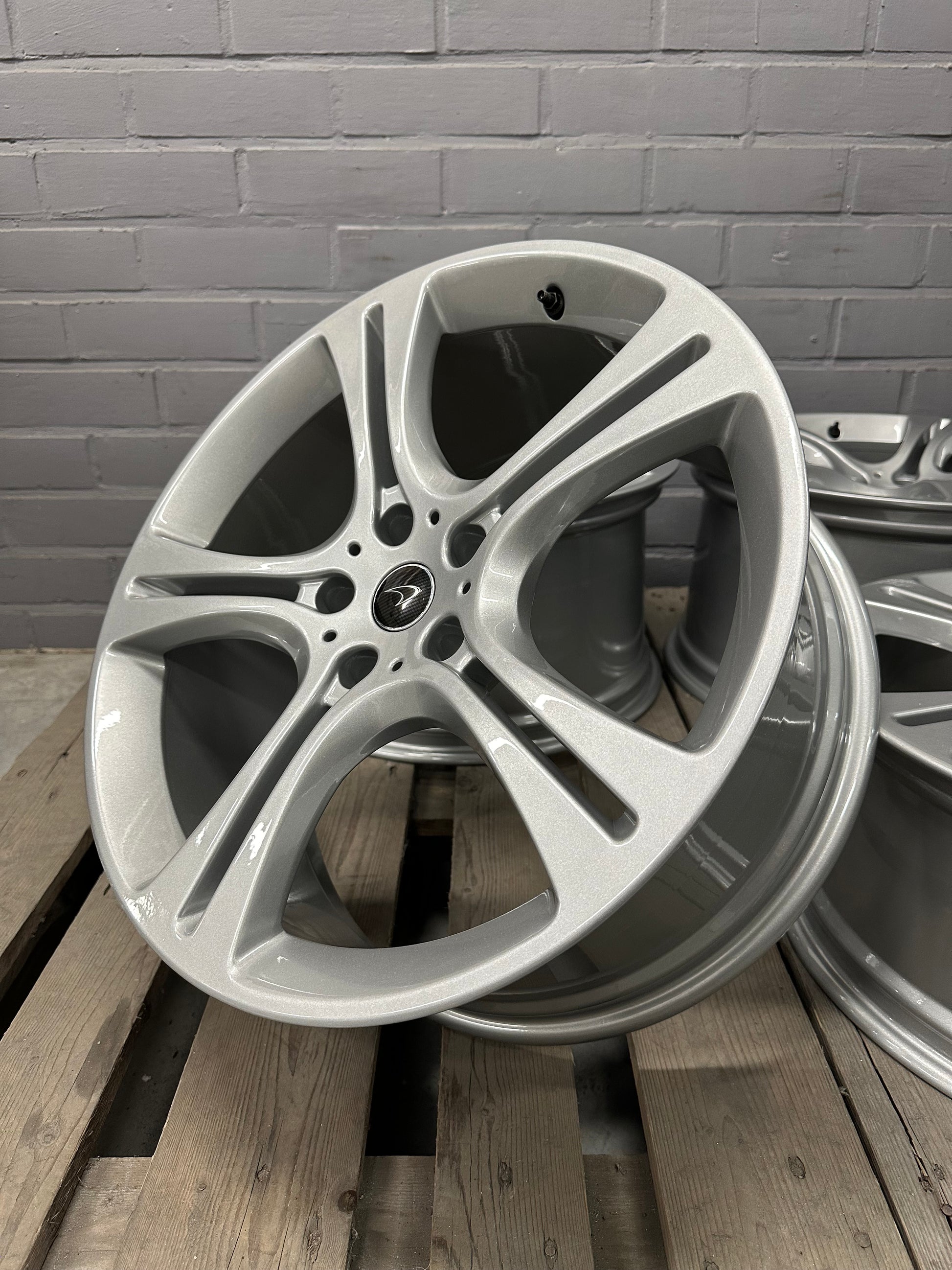 The wheels had minimal signs of wear. Therefore, we re-powdercoated them in metallic silver!