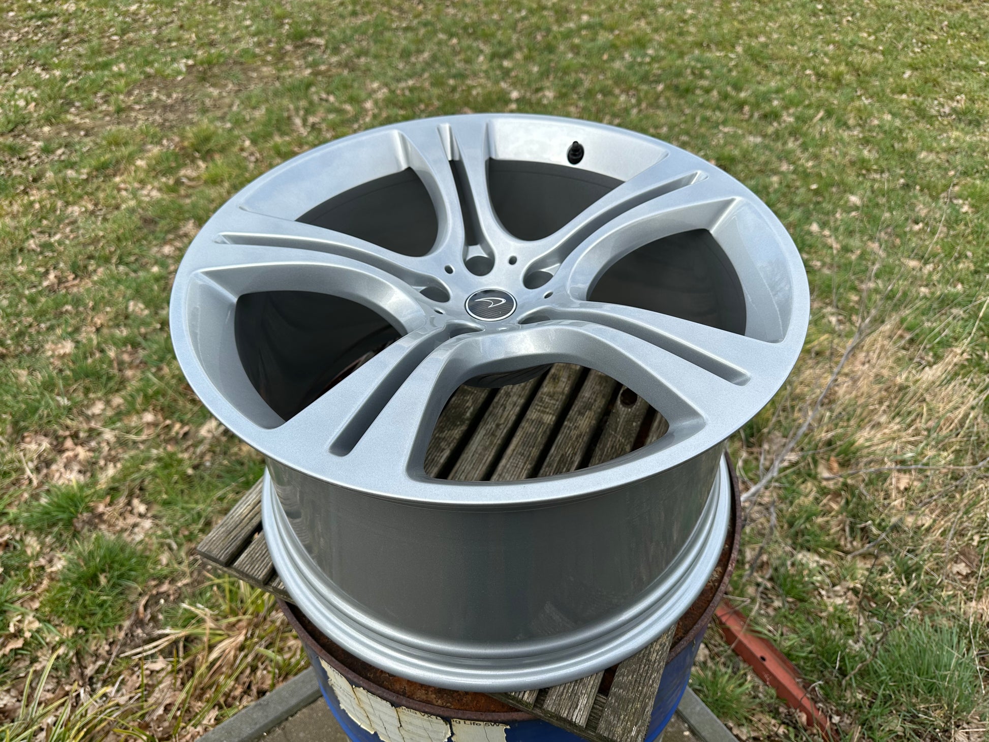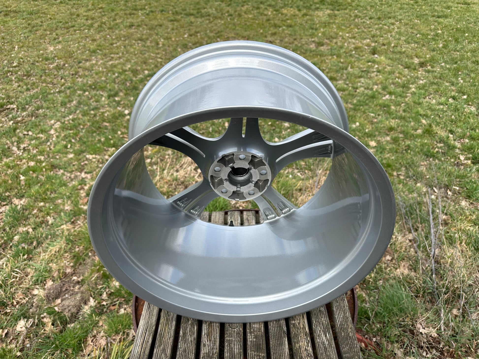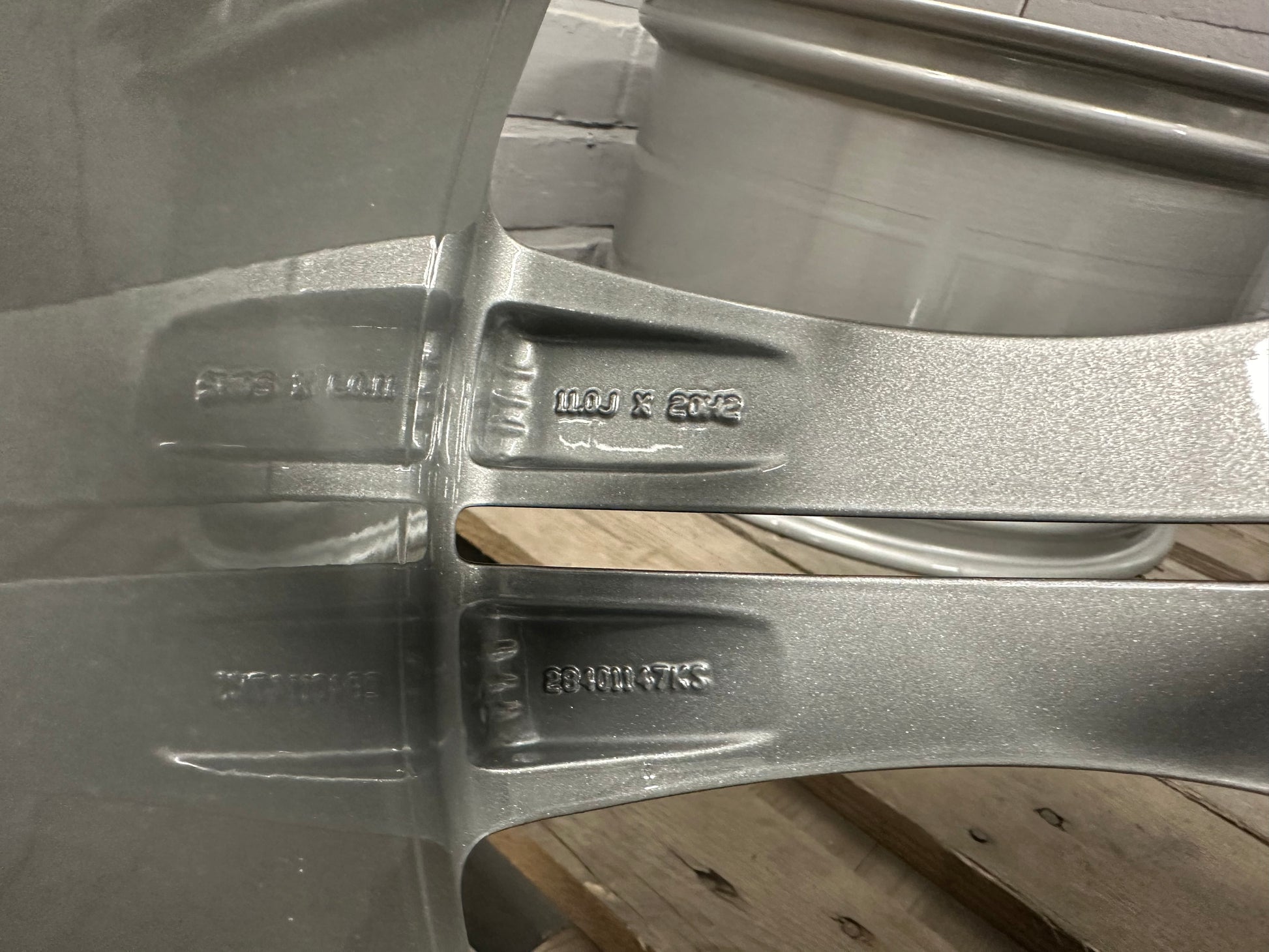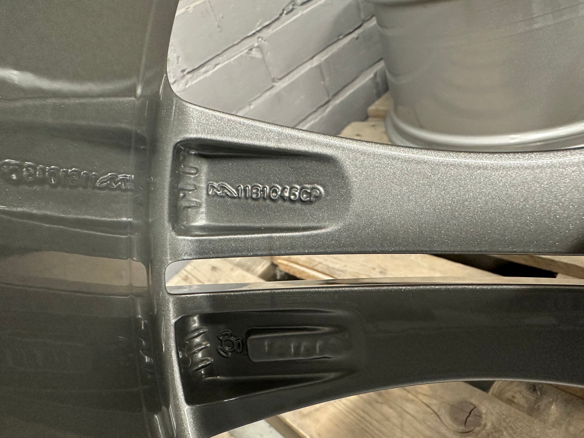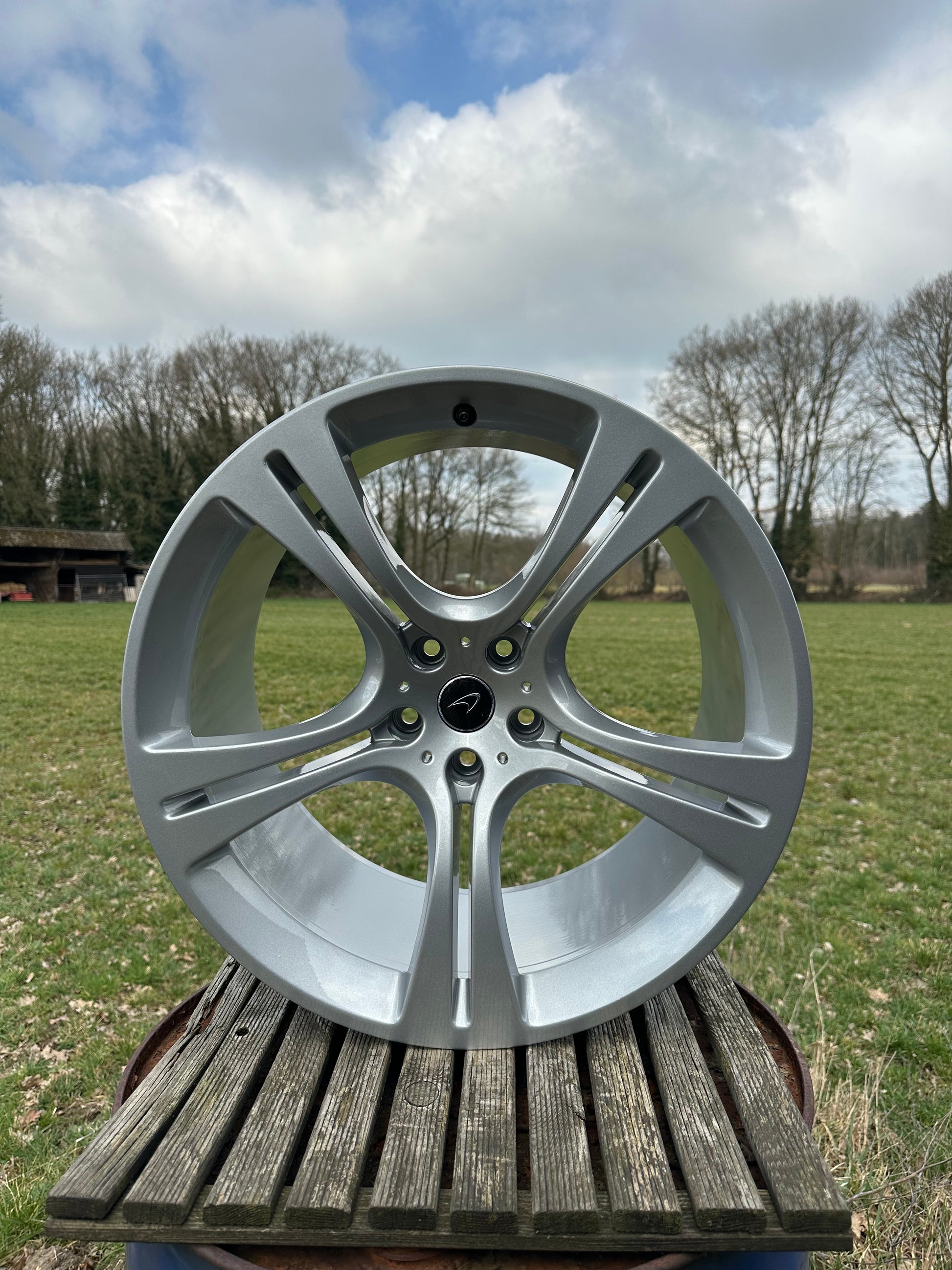 The wheels had minimal signs of wear. Therefore, we re-powdercoated them in metallic silver!